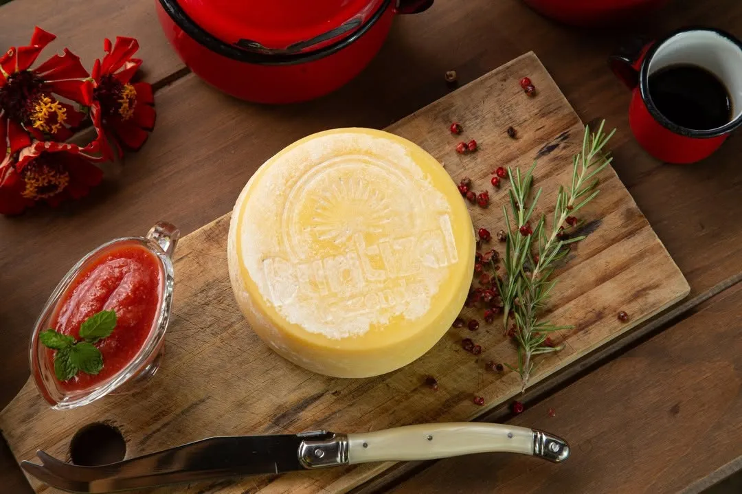Amarelinho da Serra — queijo macio, maturado por 24 dias e untado com azeite de babaçu e buriti.